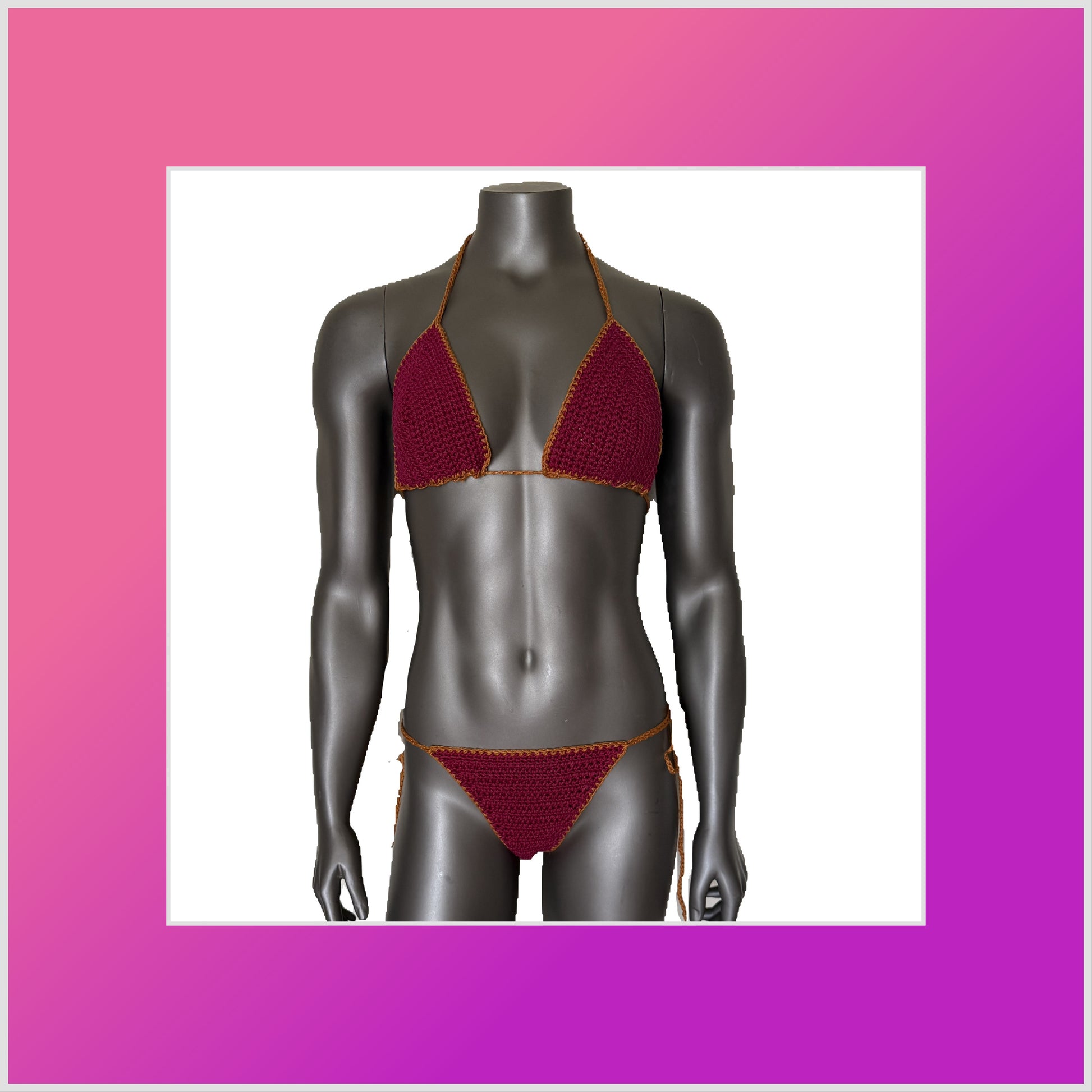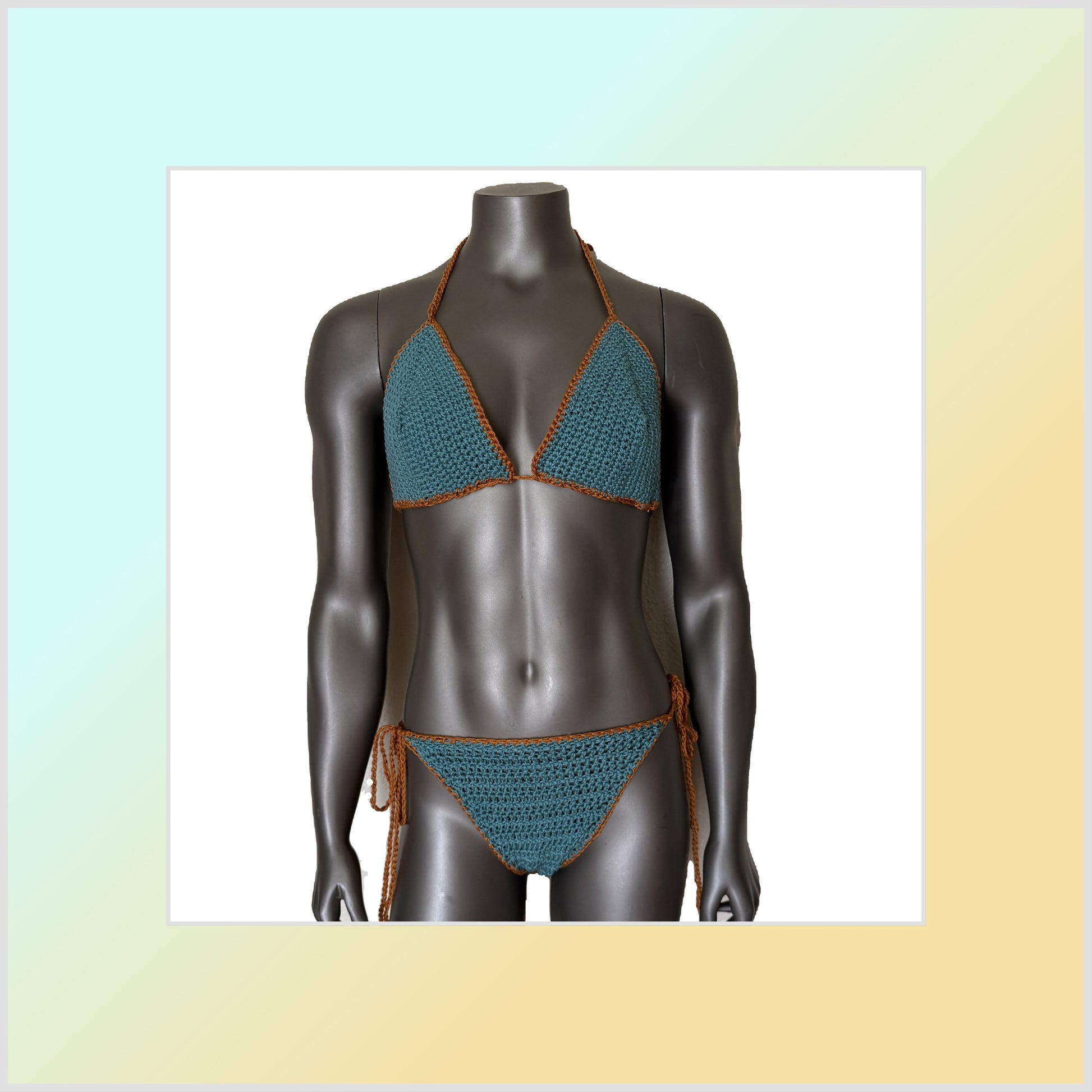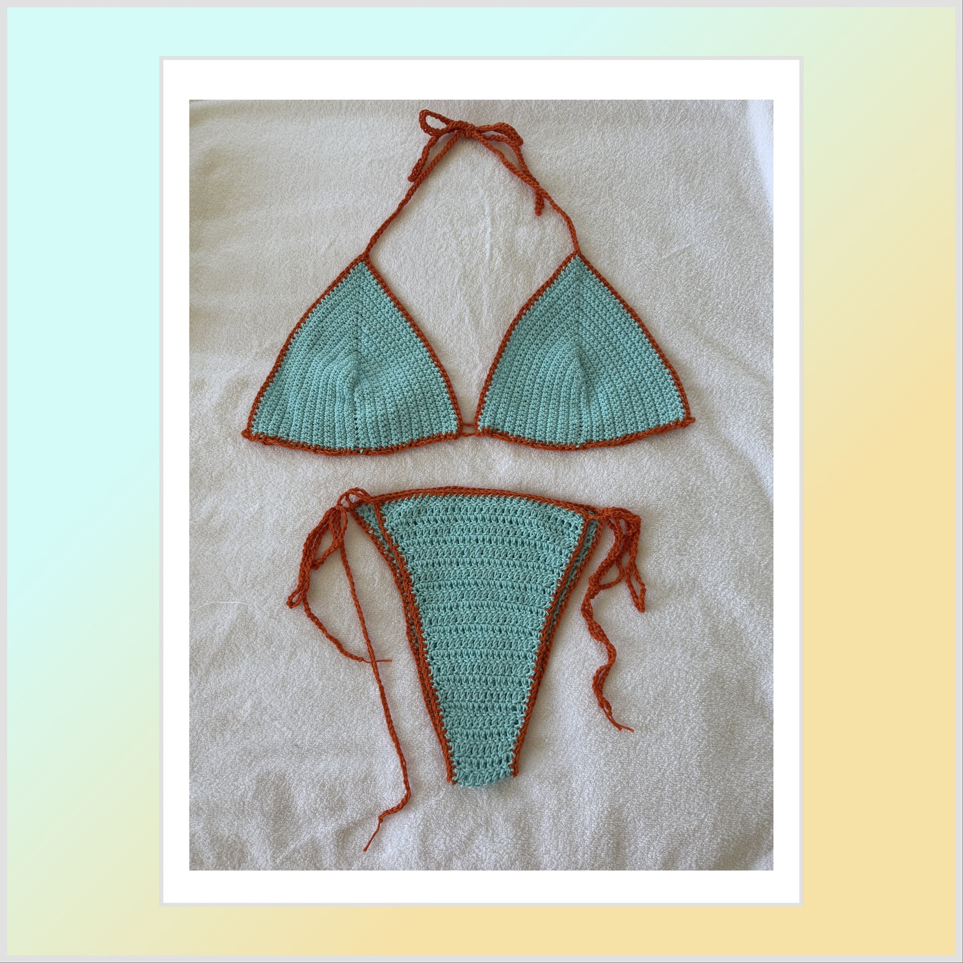 These crochet bikinis are vibrant, soft, and sexy. Perfect for any beach day, a swim at the pool, or to look cute at a BBQ. Top and bottom included. Top and bottom have strings to adjust the fit. The back of the bottoms look the same as the front side.