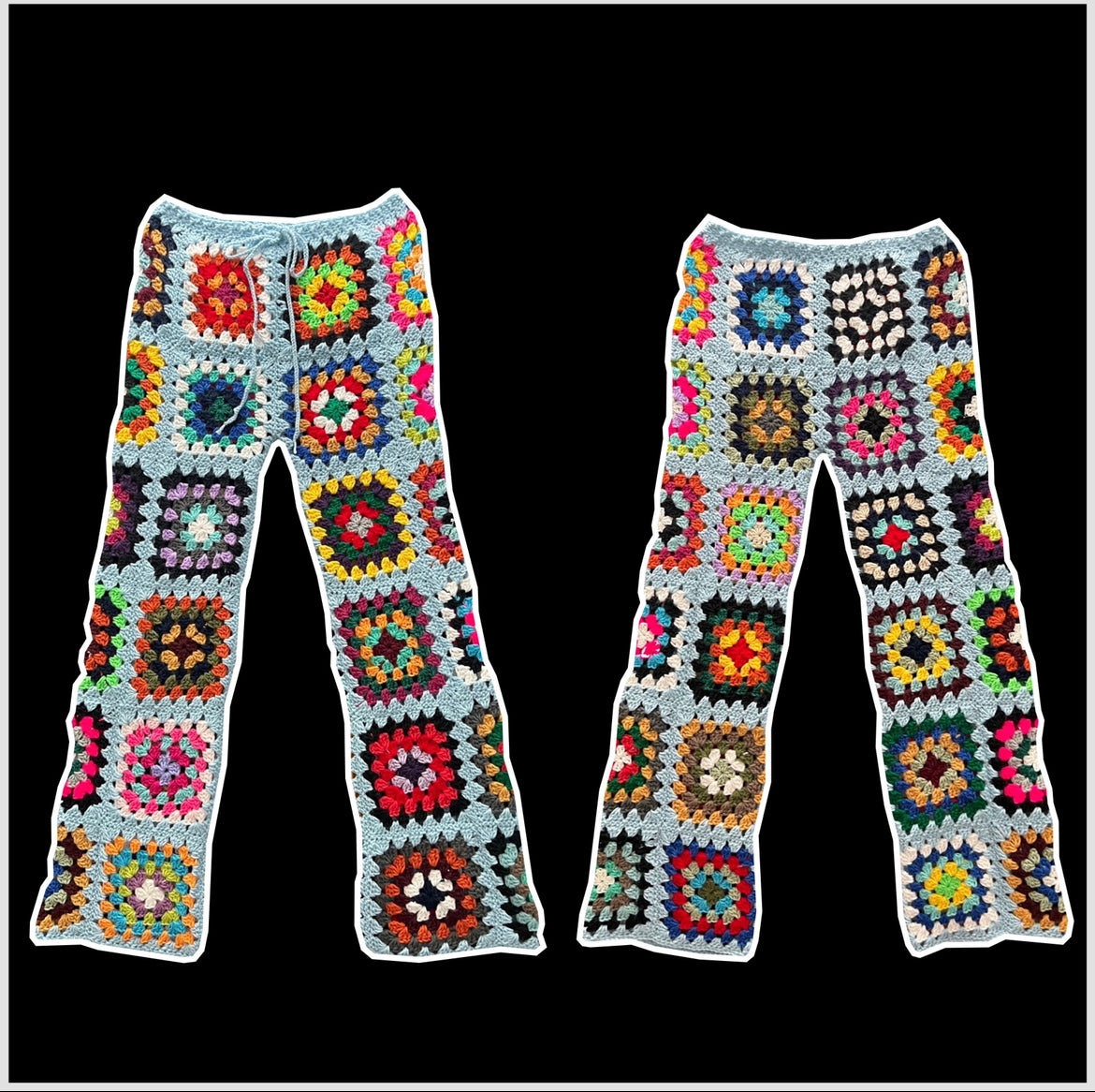 Crochet pants made from "granny squares." Can be customized for any size and any color(s). Nice, stylish, and comfy for any occasion. Please leave details in the notes at checkout!