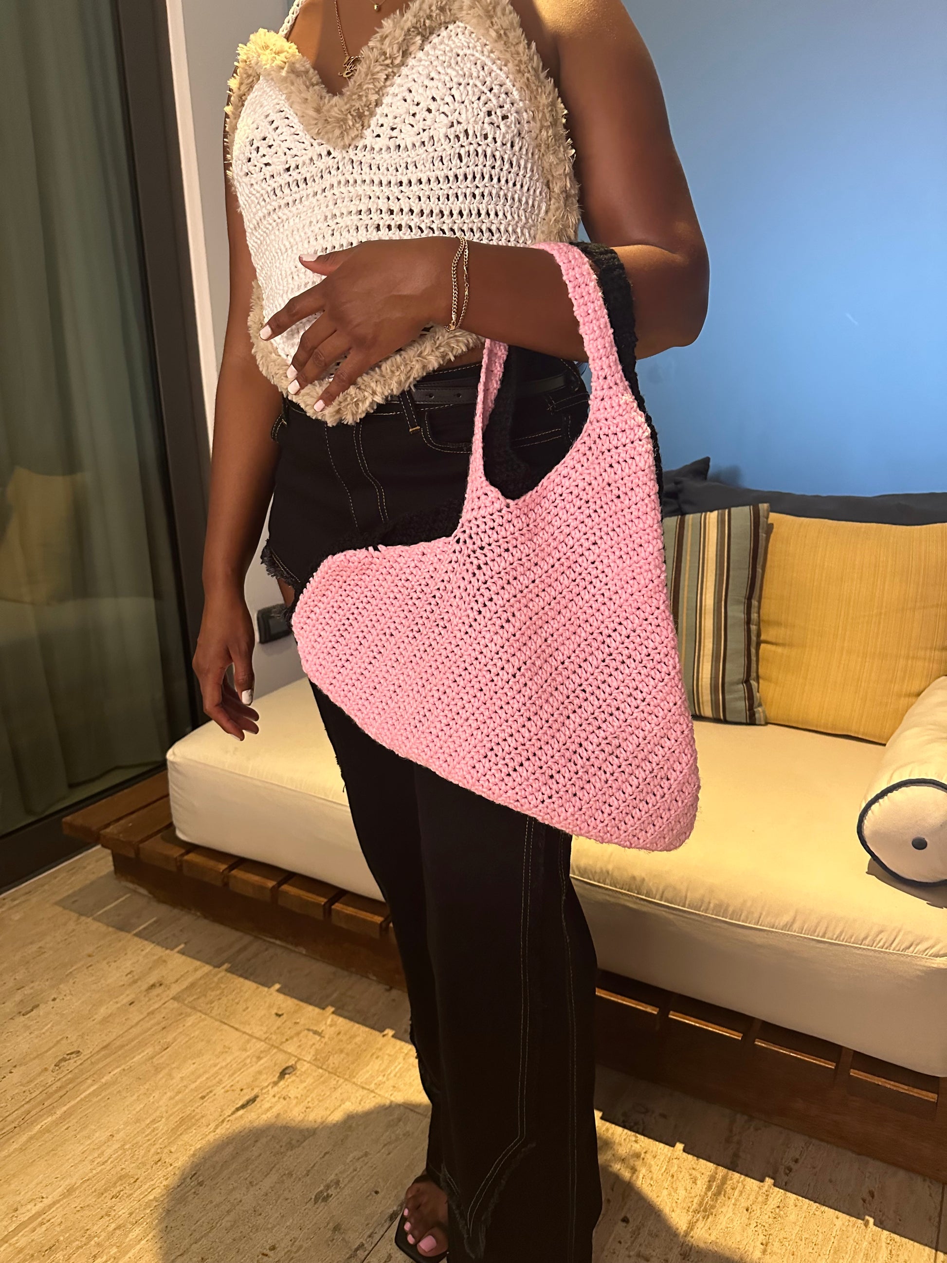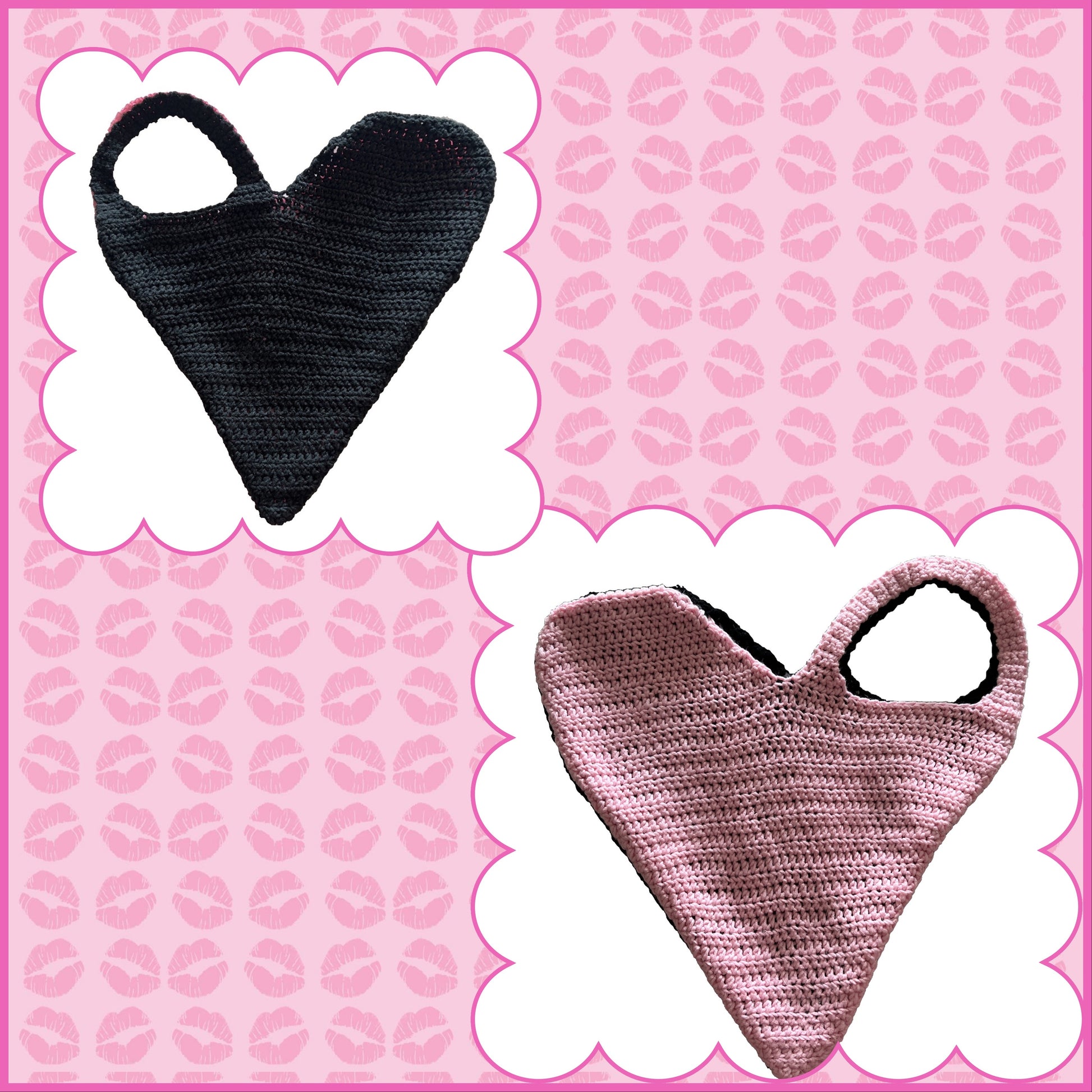Heart shaped tote bag. Medium size, good amount of space. Pink & black tote is reversible. Red and black totes are solid red or solid black.