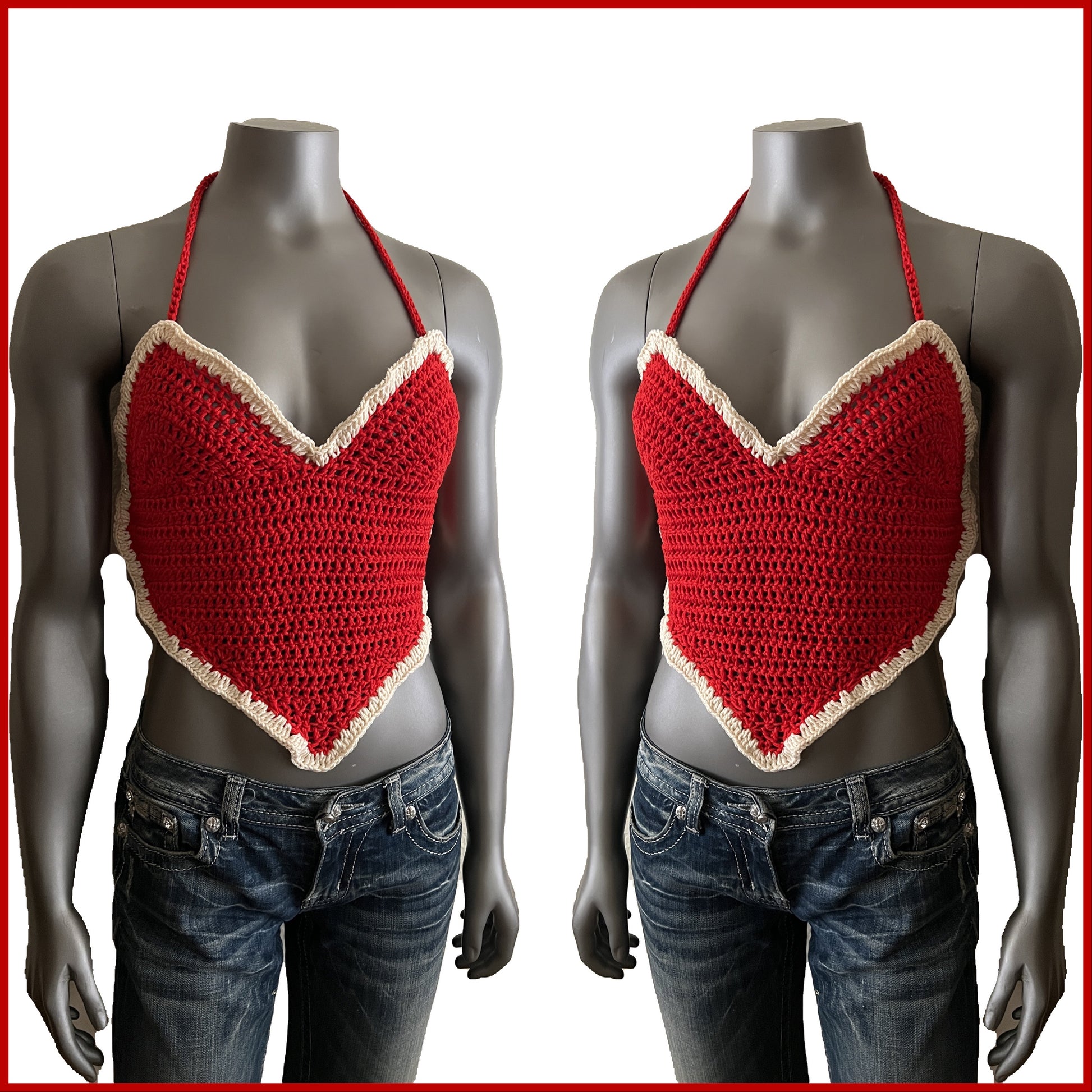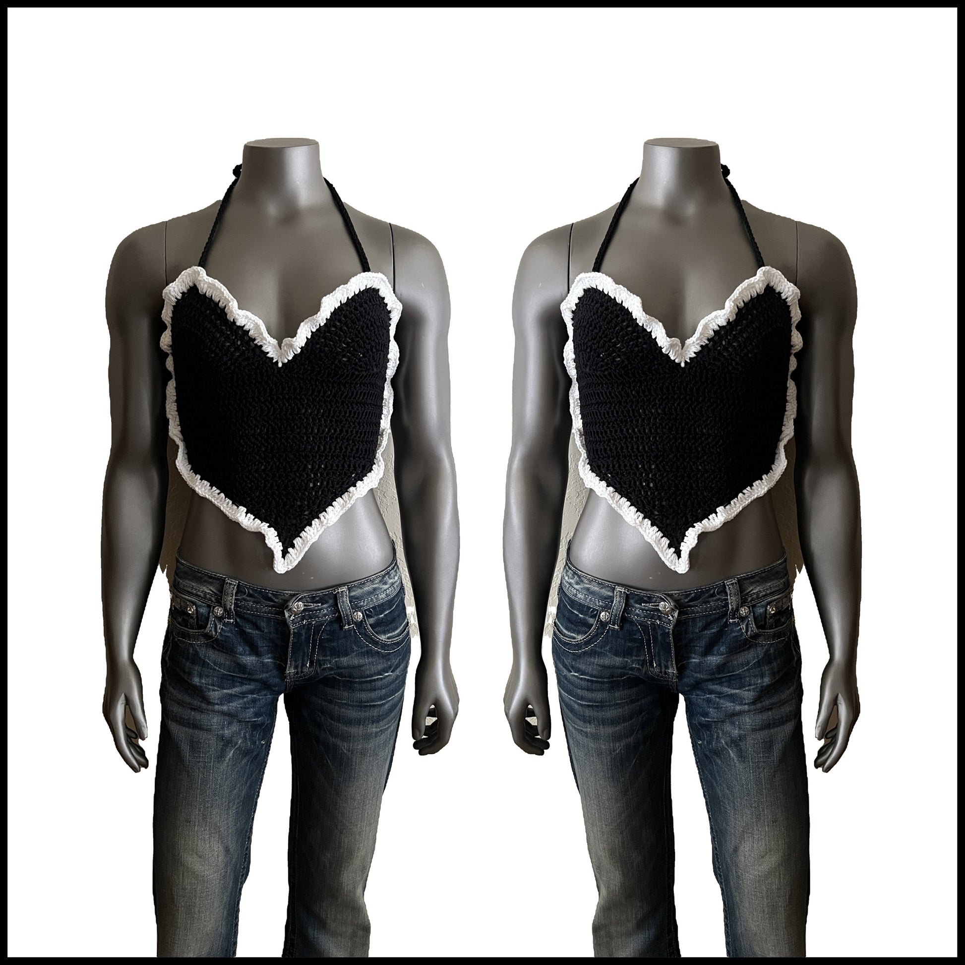 Heart shaped corset with ruffles. The back is adjustable. Tie up halter style in the front. Perfect for any Valentine or night time event.